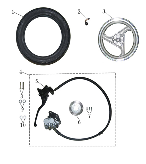 Front Brake System Complete for WY125T-74, WY50QT-58, WY125T-74R, WY50QT-58R