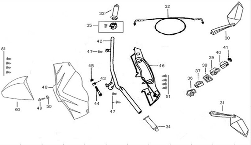 Right Mirror for ZN125T-7H, ZN125T-7H(SINNIS), DB125T-7H