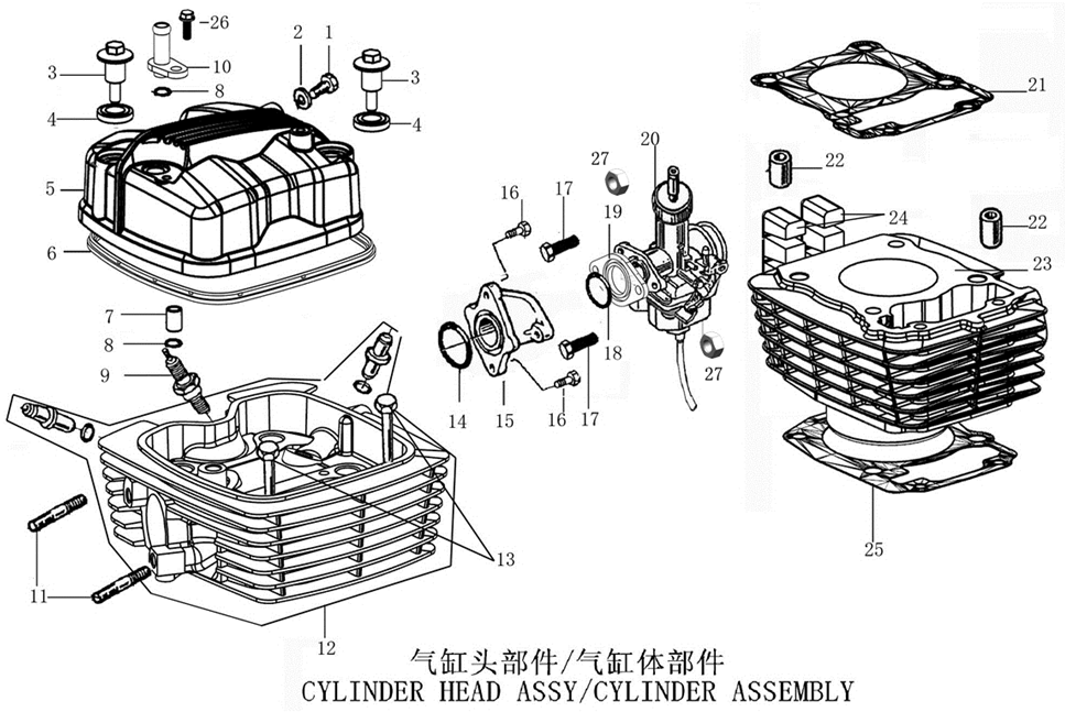 Black Cylinder Head ZY125 for ZS125-79, ZS125-48F, ZS125-48E