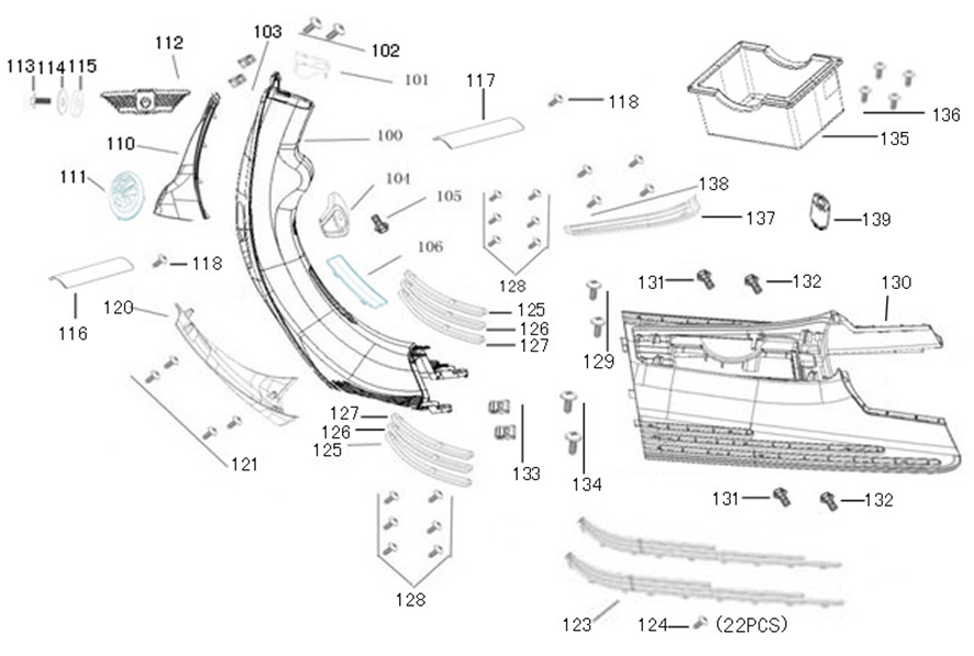 Front Blue Footwell Panel - Facing Knees BL007 for FT50QT-27, FT125T-27, FT125T-27-E4