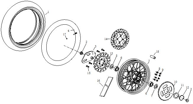 Rear Black Wheel 17 x 3.00inch for LJ125-9A, LJ125-9A-GT, SCMB125, LJ125-9A-GT-E5, LJ