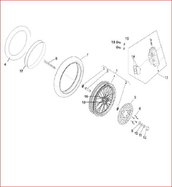 Front Wheel Spindle M14 x 240mm for UM125-ADT, UM125-CL