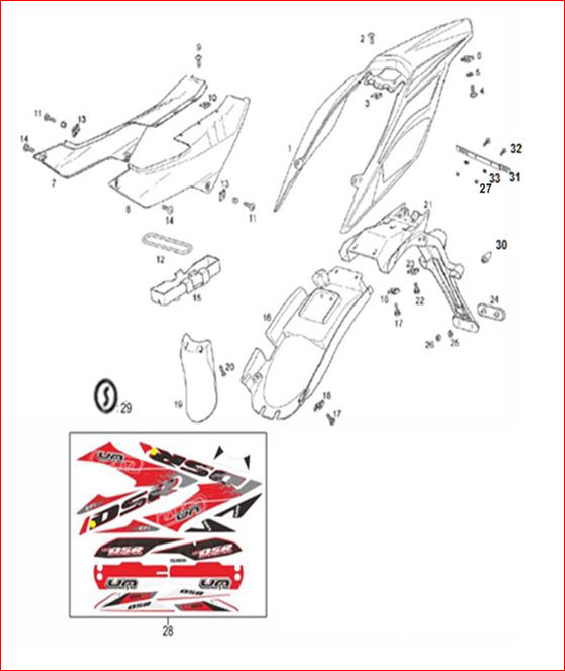 Black/Red Stickers (Pack) for UM125-DSM, UM125-ADV