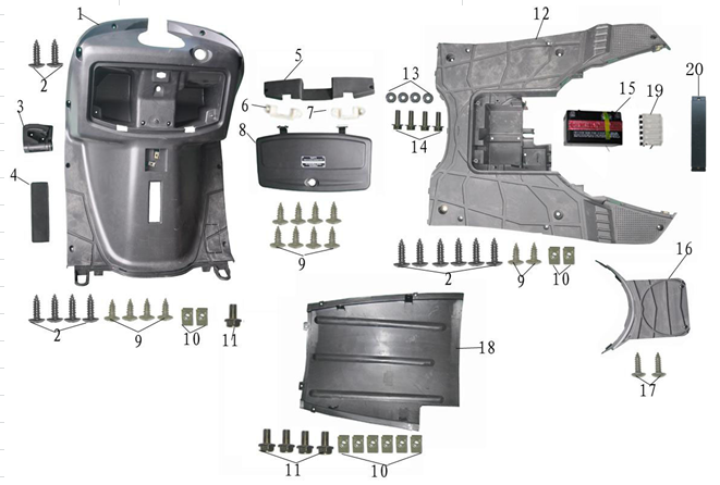 Front Footwell Panel - Facing Knees for WY125T-108, WY125T-108-E4
