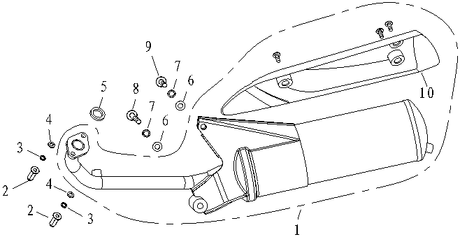 50cc Scooter Black Complete Exhaust System (type 2) for LJ50QT-9M, LJ50QT-6L