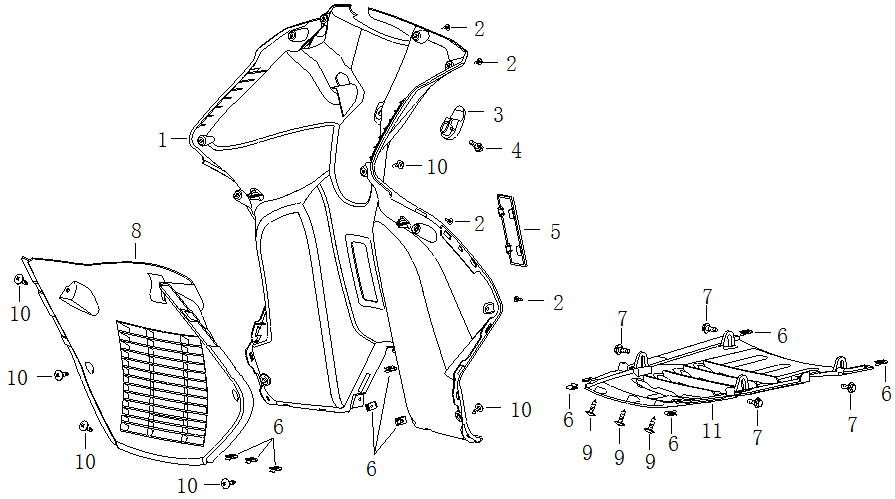 Front Footwell Panel - Facing Knees for LJ125T-8M, LJ125T-8M-E4, LJ50QT-9M, LJ125T-9M-E5,
