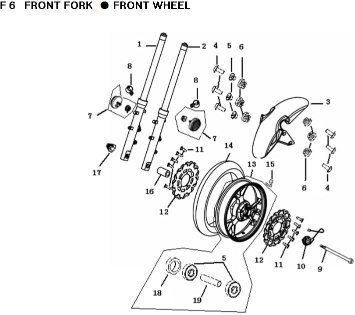 Front Spindle 240 x 15 x 1.5mm for SY125-10, TR125-GP2, TR125-GP2-E5, MITT125GP2, SY1