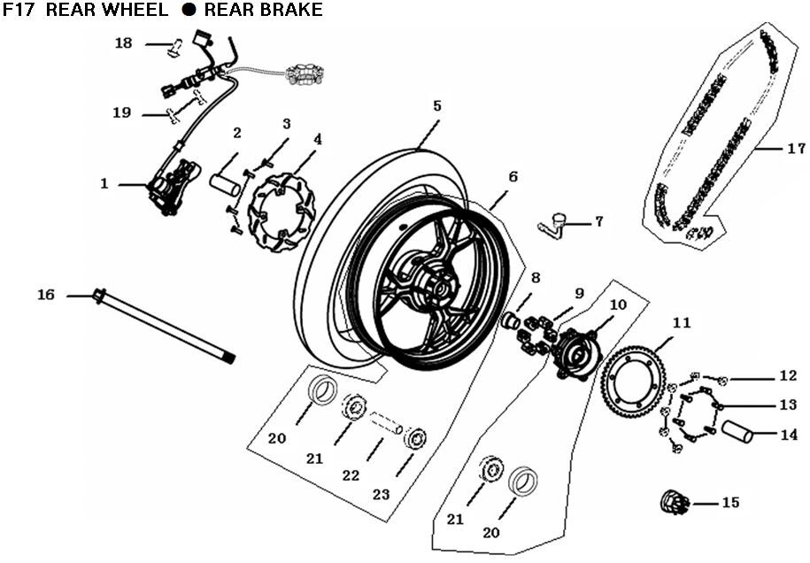 Rear Brake System Complete for TR125-GP2, TR125-GP2-E5, MITT125GP2