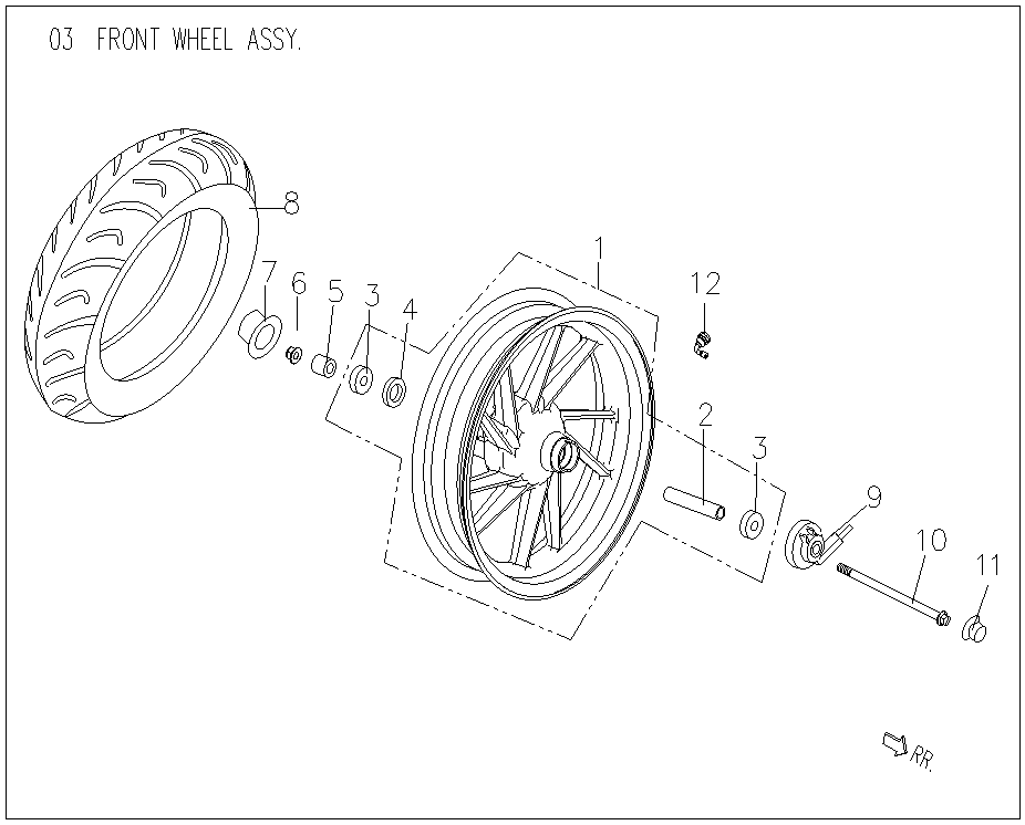 Front Spindle M12 x 255mm for LJ125T-18, LJ125T-18-E5