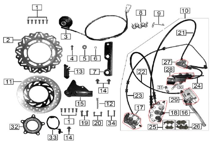 Combined Brake System Complete for ZS125-79-E4, ZS125-79-E5