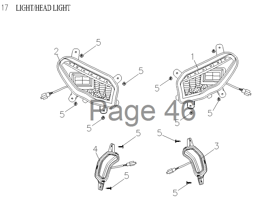 Left LED Headlight Assembly for LJ125T-18-E5, LJ300T-18-E5