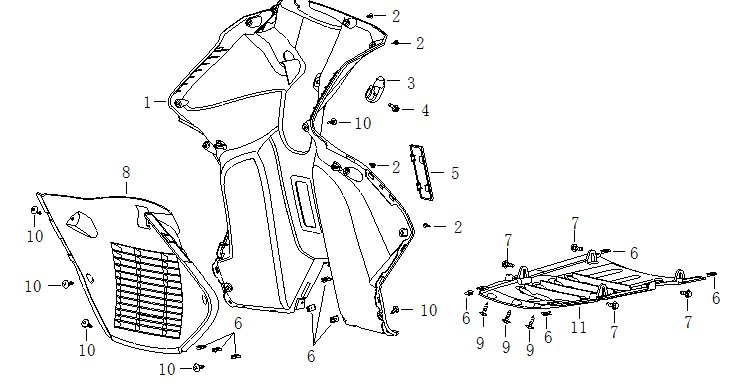 Front Footwell Panel - Facing Knees for LJ125T-8M, LJ125T-8M-E4, LJ50QT-9M, LJ125T-9M-E5,
