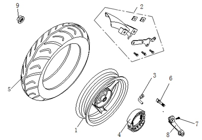 Rear Black Wheel 10 x 2.50inch (Drum Brake) for LJ50QT-3L, LJ50QT-5L, LJ50QT-9L-E5