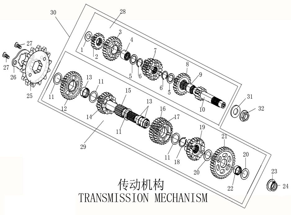 Complete Gearbox Input and Output Shaft