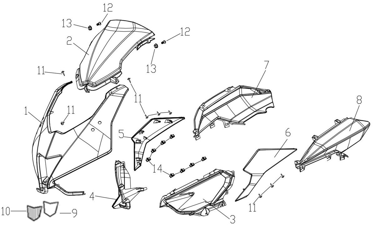 Front Upper Left Carbon Effect Panel With Decals for SY125-10-SE-V2