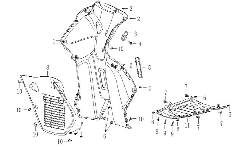 Front Footwell Panel - Facing Knees for LJ125T-8M, LJ125T-8M-E4, LJ50QT-9M, LJ125T-9M-E5,