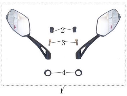 Left Red Mirror WY-052 for WY50QT-111, WY125T-74R, WY50QT-58R, WY125T-74R-E4
