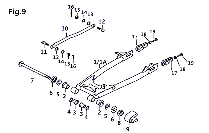 Swinging Arm Spindle M14 x 220mm for XF125R, DB125R, XF125R-E4