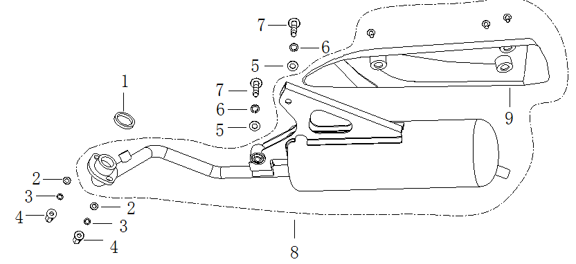 50cc Scooter Black Exhaust System for LJ50QT-9M-E5, LJ50QT-6L-E5