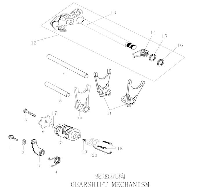 Gear Selector Shaft for ZS125-48E, ZS125-48F