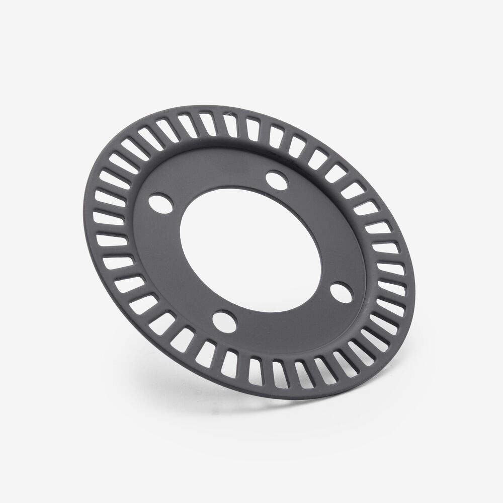 The gear-like shaped ABS ring (also rotor or sensor ring) acts as a counter piece to the ABS speed sensor (ABS sensor) for recording the speed or the speed change of the wheel on which it is installed.