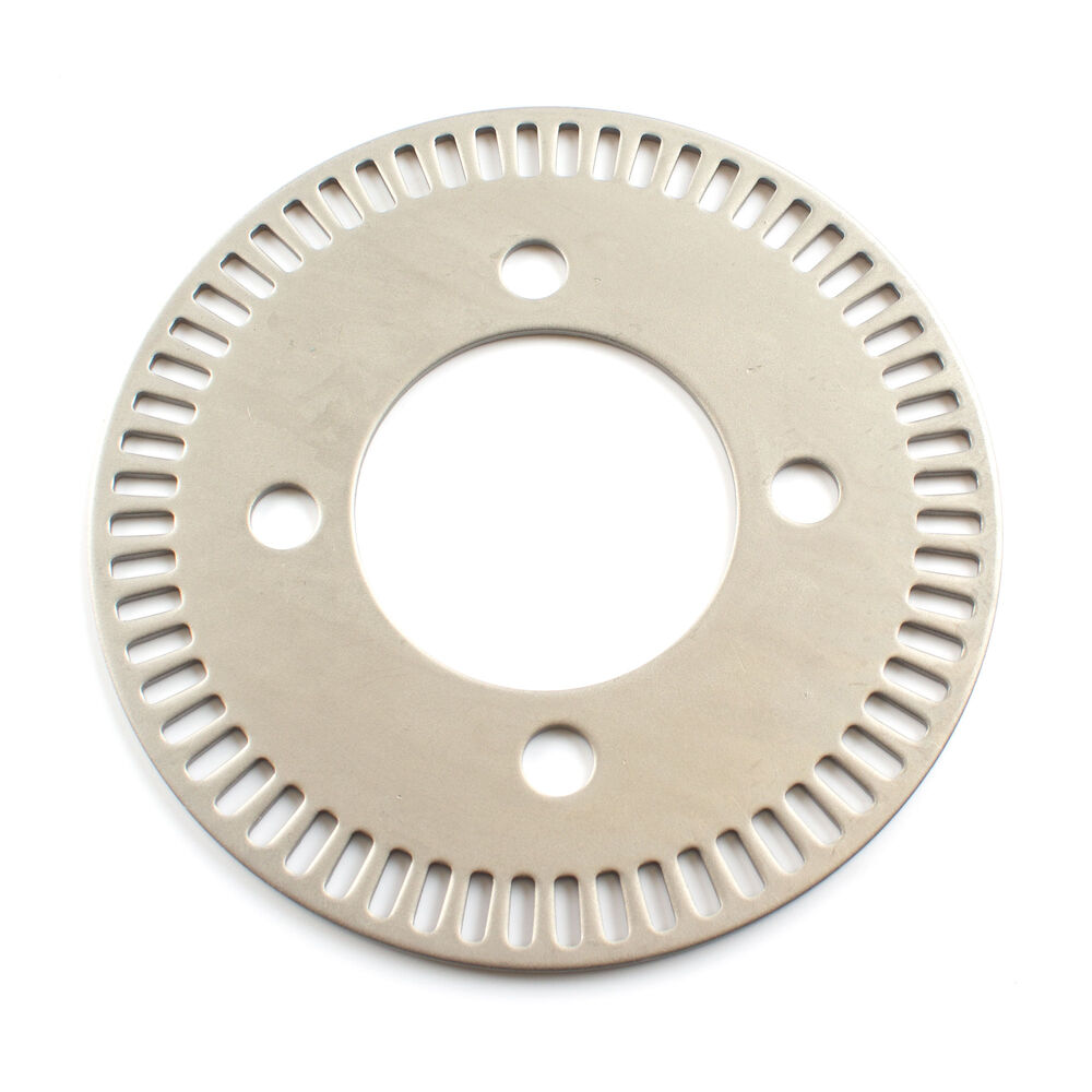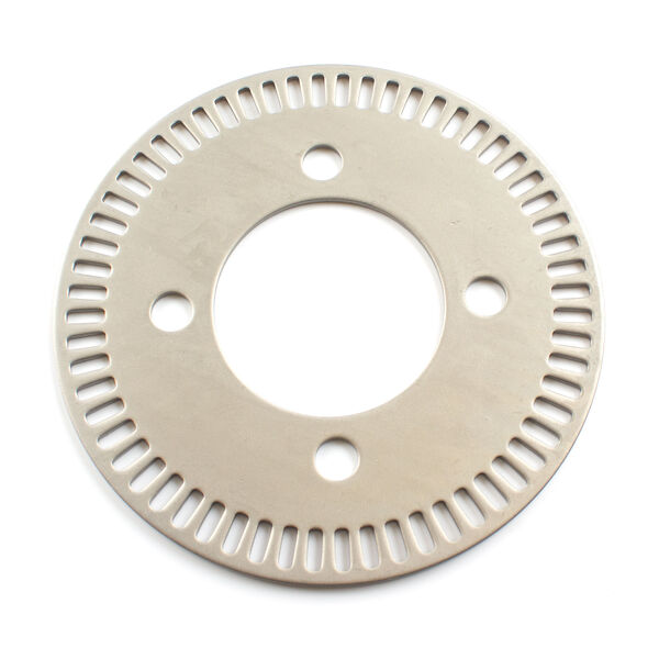 The gear-like shaped ABS ring (also rotor or sensor ring) acts as a counter piece to the ABS speed sensor (ABS sensor) for recording the speed or the speed change of the wheel on which it is installed.