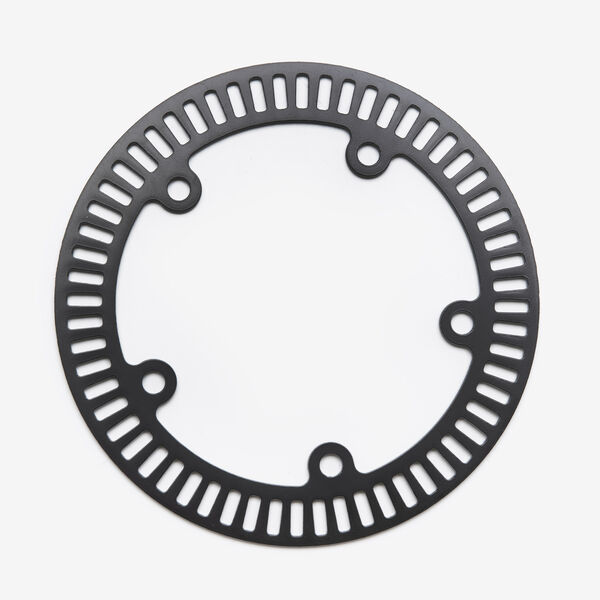 The gear-like shaped ABS ring (also rotor or sensor ring) acts as a counter piece to the ABS speed sensor (ABS sensor) for recording the speed or the speed change of the wheel on which it is installed.