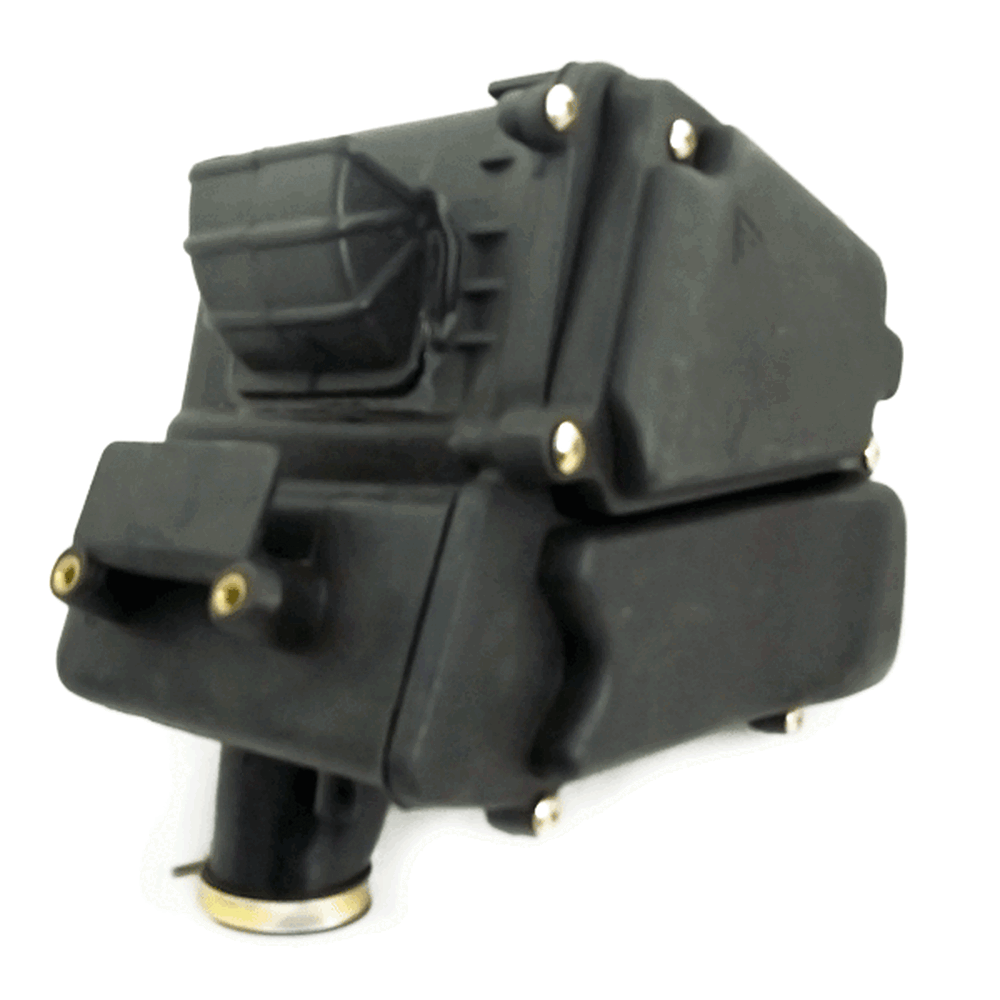 The airbox allows the use of one air filter instead of multiple filters thus reducing complexity. Developments arising from concerns about engine emissions during the late 1970s now allow the airbox to collect gases from the crankcase and the tank air vent and re-feed them to the engine.
