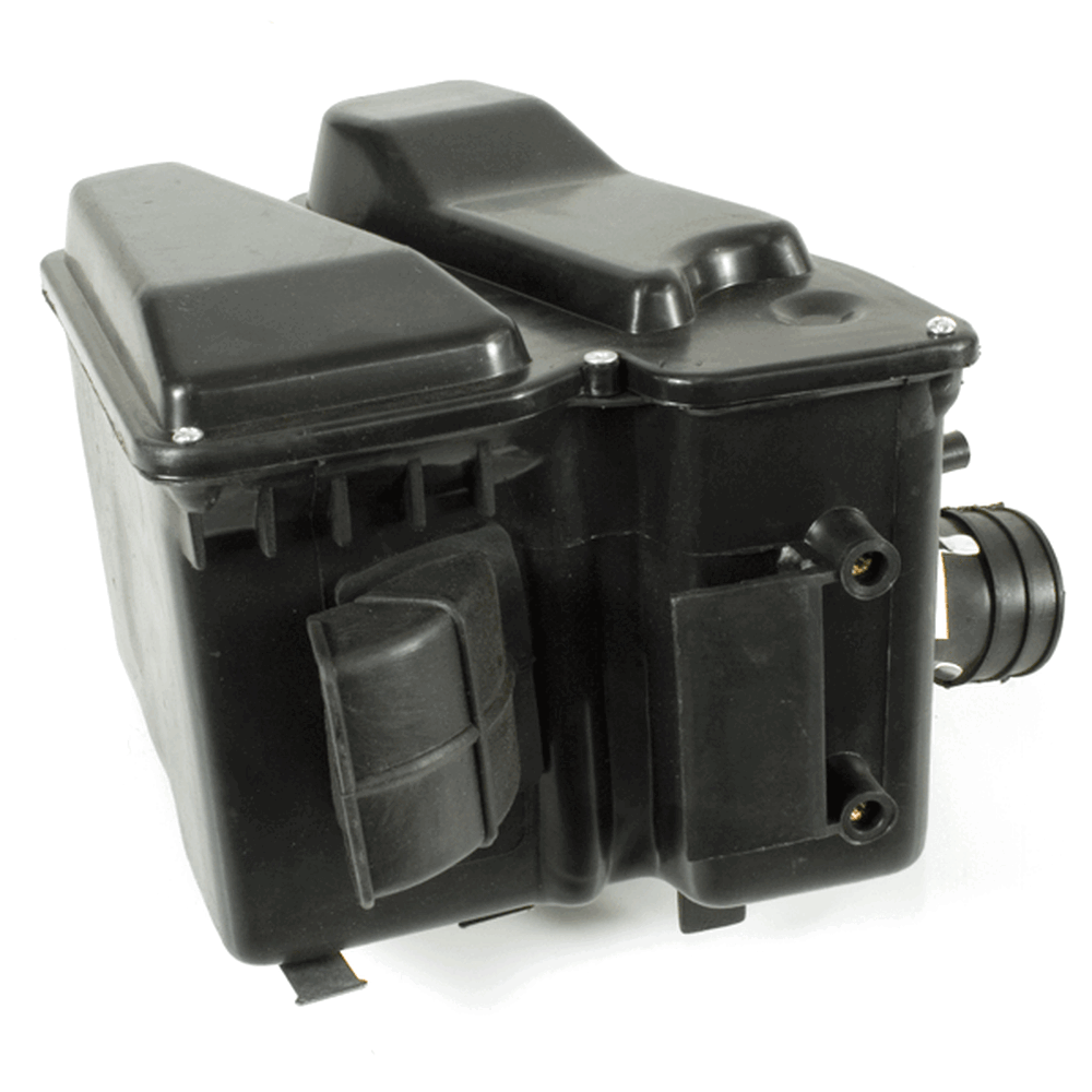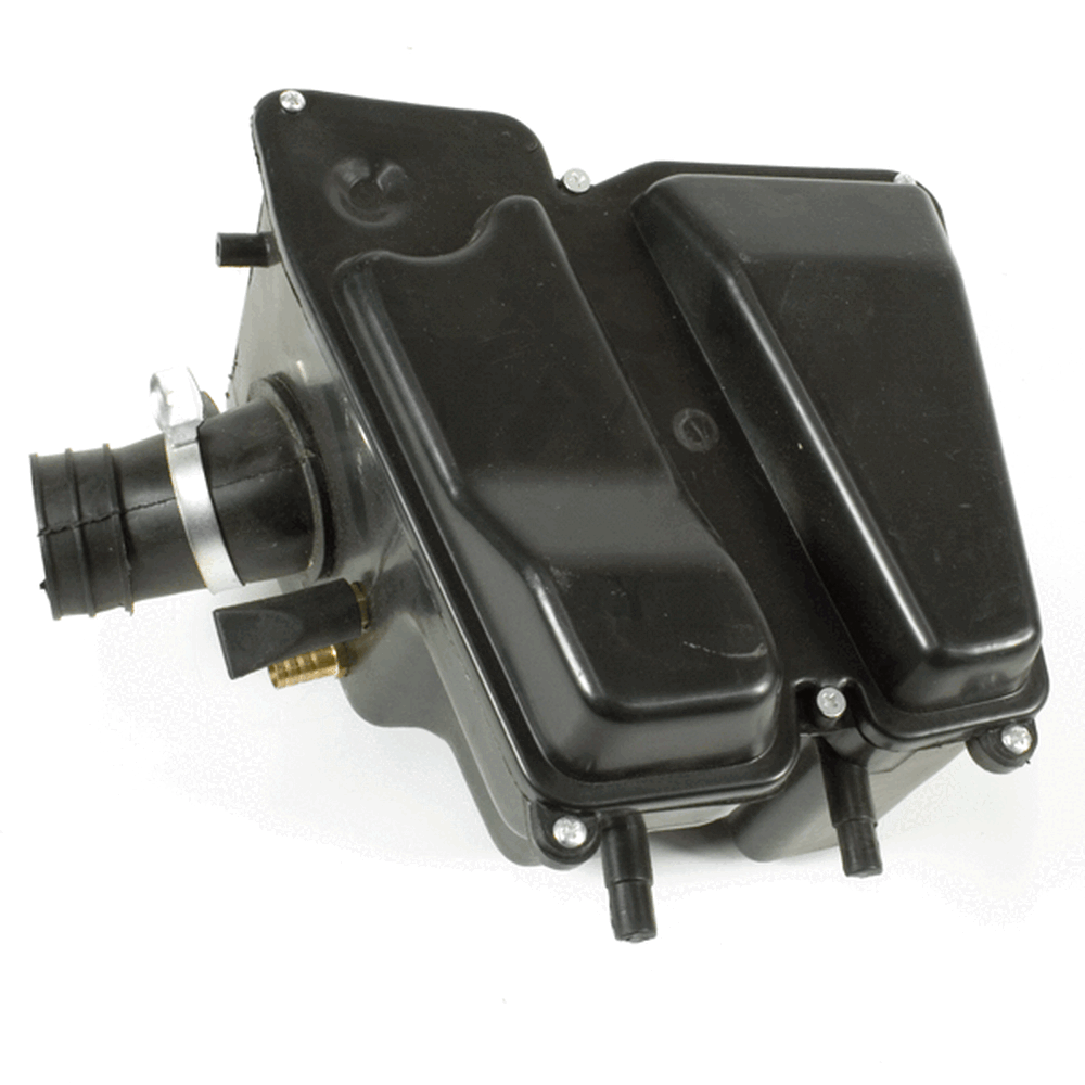 The airbox allows the use of one air filter instead of multiple filters thus reducing complexity. Developments arising from concerns about engine emissions during the late 1970s now allow the airbox to collect gases from the crankcase and the tank air vent and re-feed them to the engine.