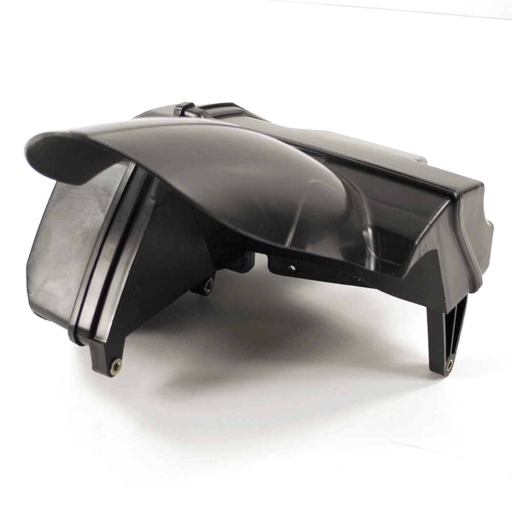The airbox allows the use of one air filter instead of multiple filters thus reducing complexity. Developments arising from concerns about engine emissions during the late 1970s now allow the airbox to collect gases from the crankcase and the tank air vent and re-feed them to the engine.