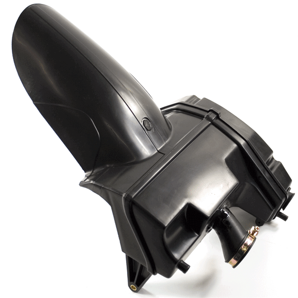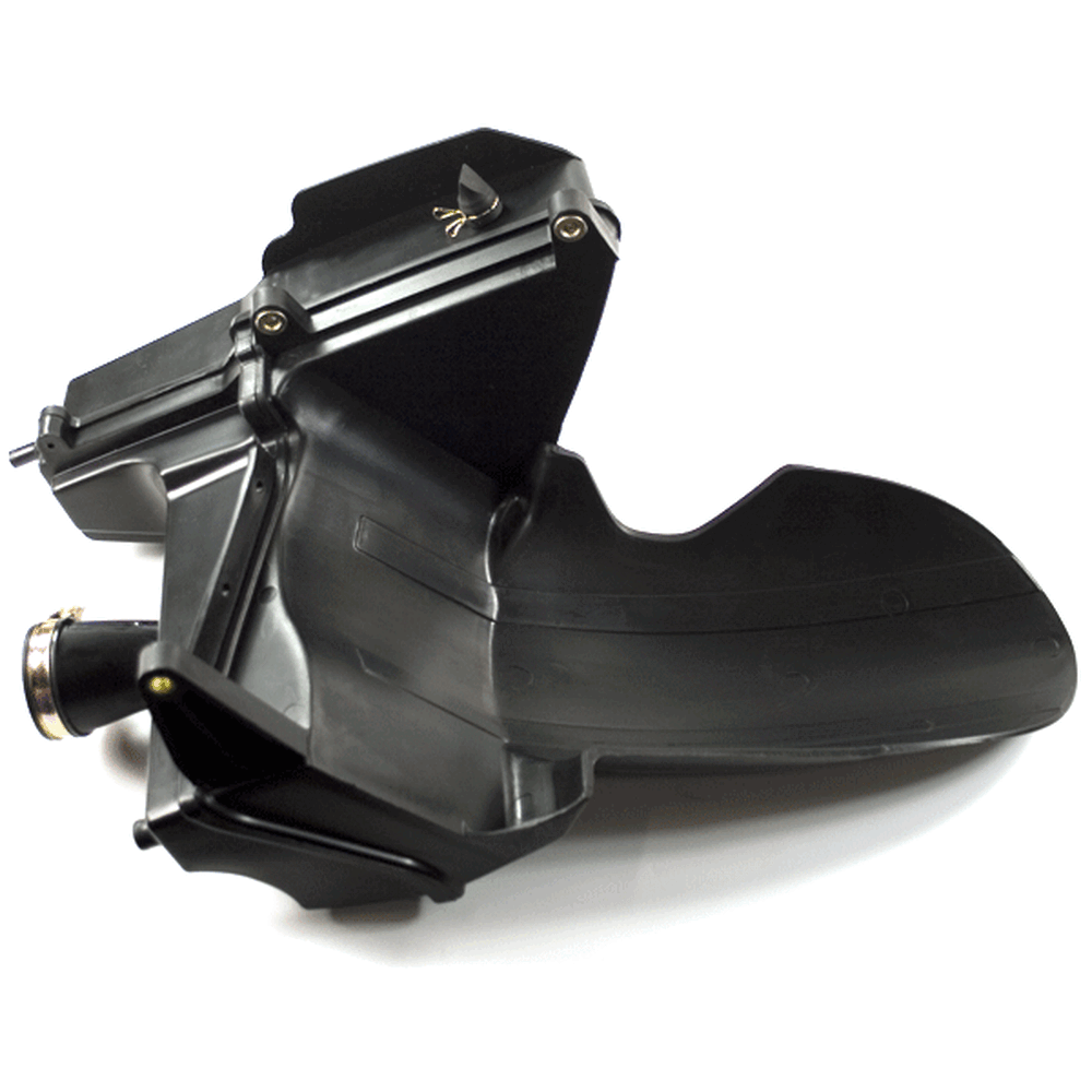 An airbox is an empty chamber on the inlet of most combustion engines. It collects air from outside and feeds it to the intake hoses of each cylinder.