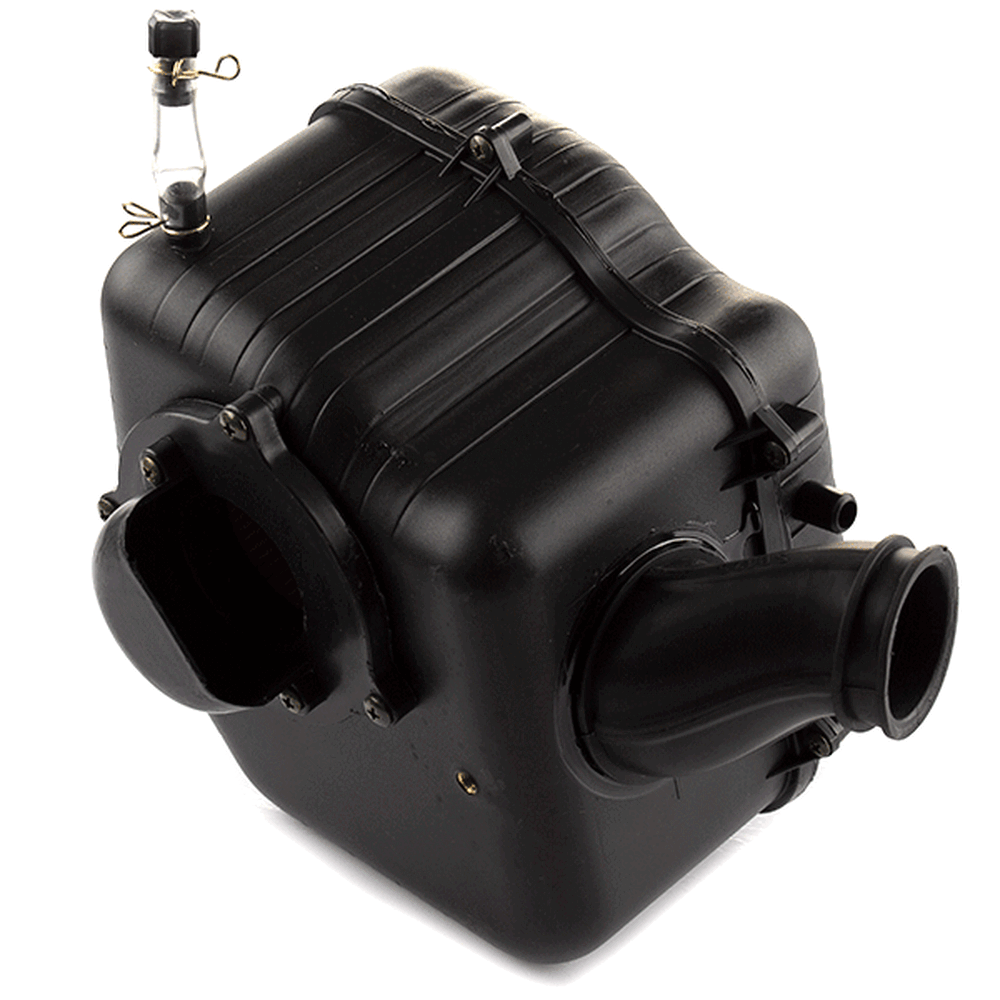 An airbox is an empty chamber on the inlet of most combustion engines. It collects air from outside and feeds it to the intake hoses of each cylinder.