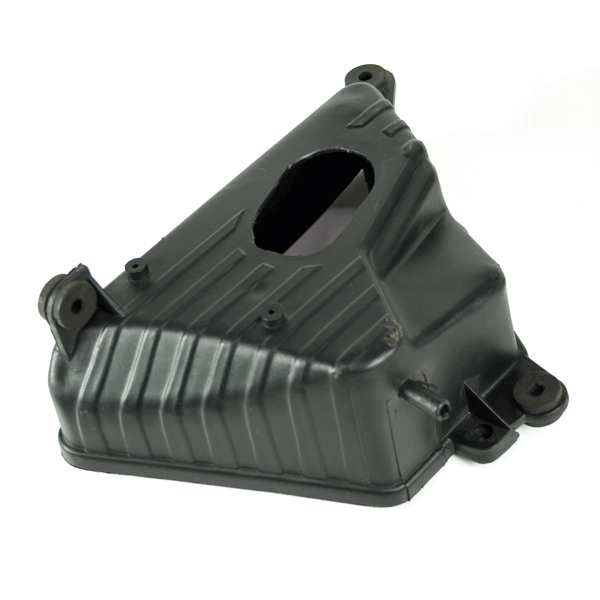 An airbox is an empty chamber on the inlet of most combustion engines. It collects air from outside and feeds it to the intake hoses of each cylinder.