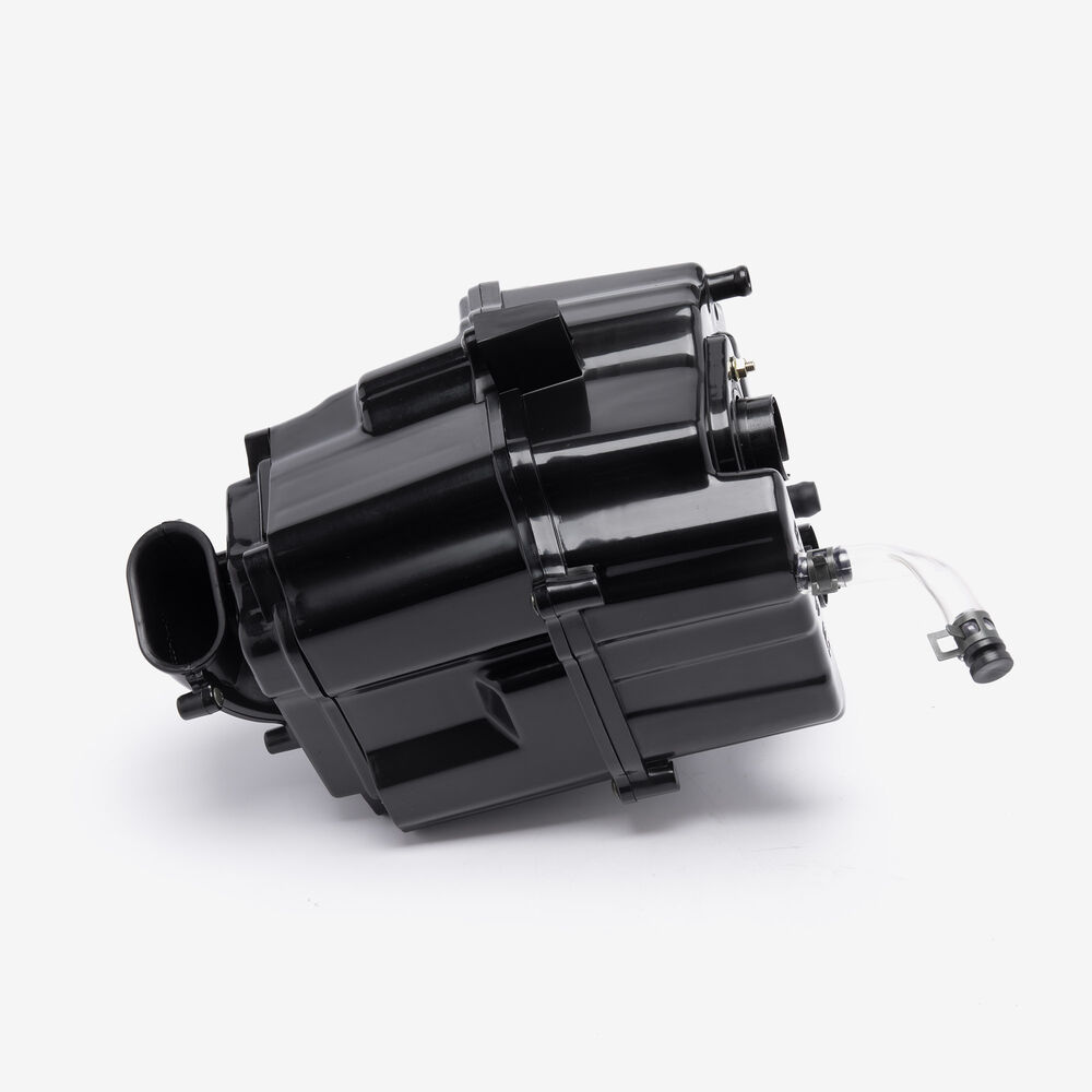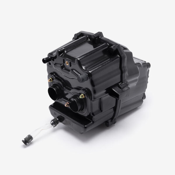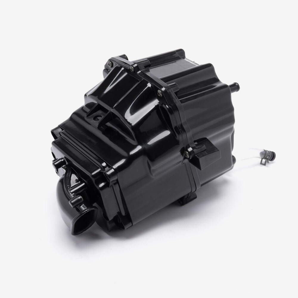 The airbox allows the use of one air filter instead of multiple filters thus reducing complexity. Developments arising from concerns about engine emissions during the late 1970s now allow the airbox to collect gases from the crankcase and the tank air vent and re-feed them to the engine.