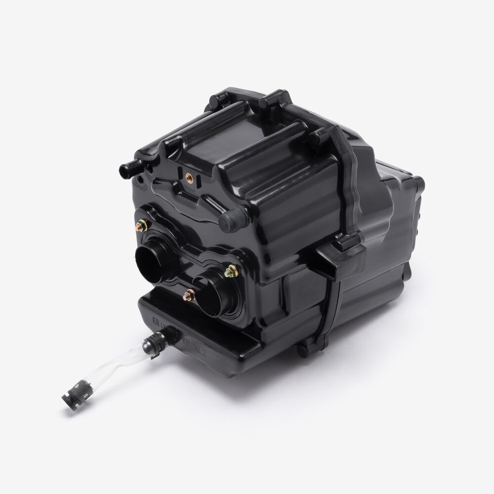 An airbox is an empty chamber on the inlet of most combustion engines. It collects air from outside and feeds it to the intake hoses of each cylinder.