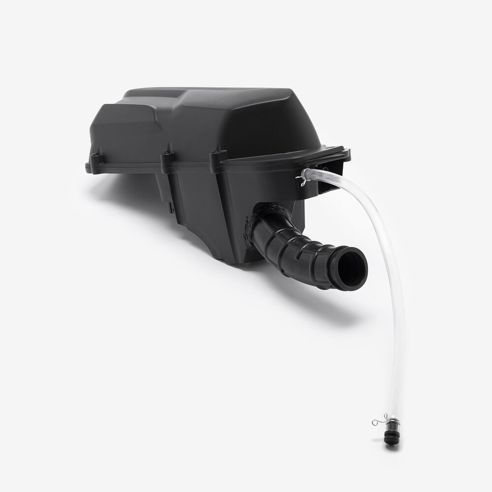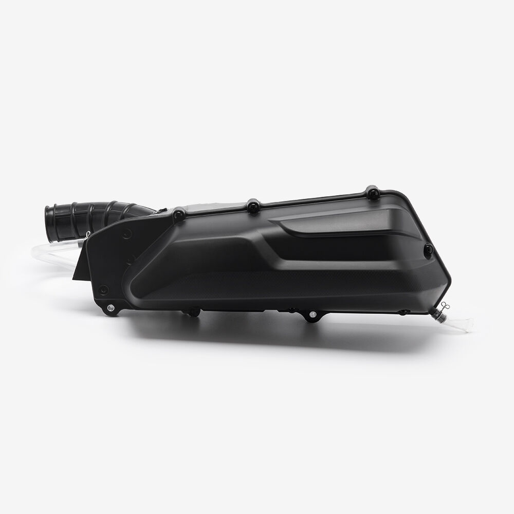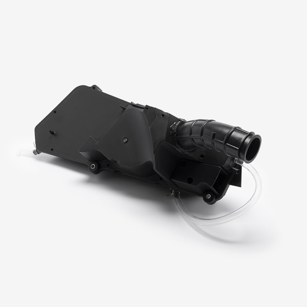 An airbox is an empty chamber on the inlet of most combustion engines. It collects air from outside and feeds it to the intake hoses of each cylinder.