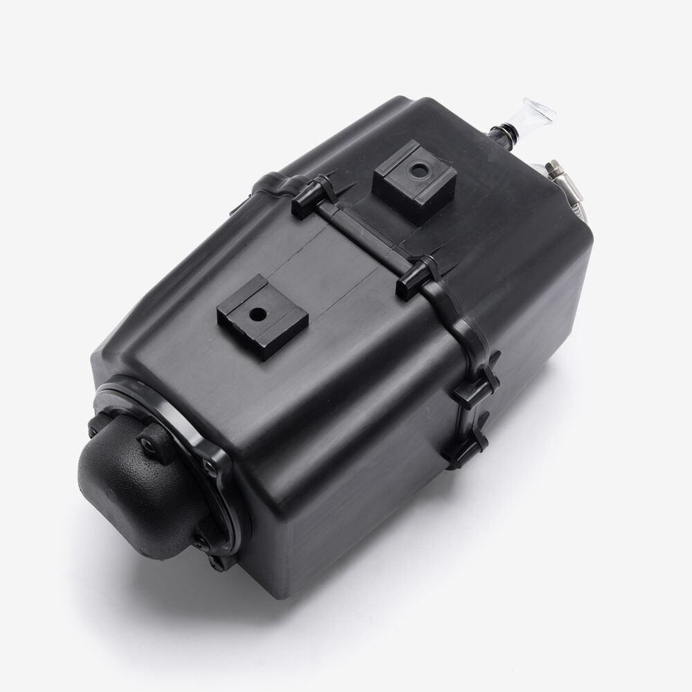 An airbox is an empty chamber on the inlet of most combustion engines. It collects air from outside and feeds it to the intake hoses of each cylinder.