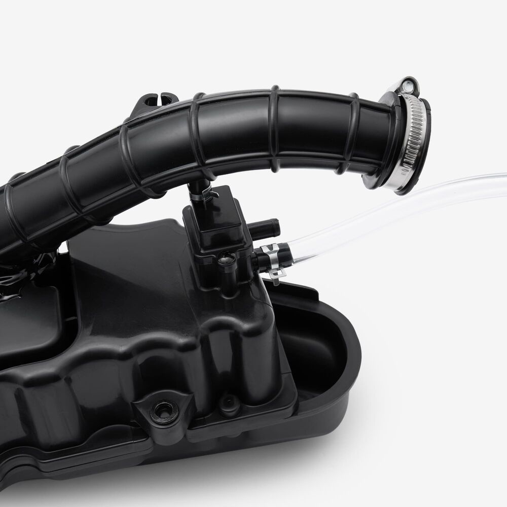 The airbox allows the use of one air filter instead of multiple filters thus reducing complexity. Developments arising from concerns about engine emissions during the late 1970s now allow the airbox to collect gases from the crankcase and the tank air vent and re-feed them to the engine.