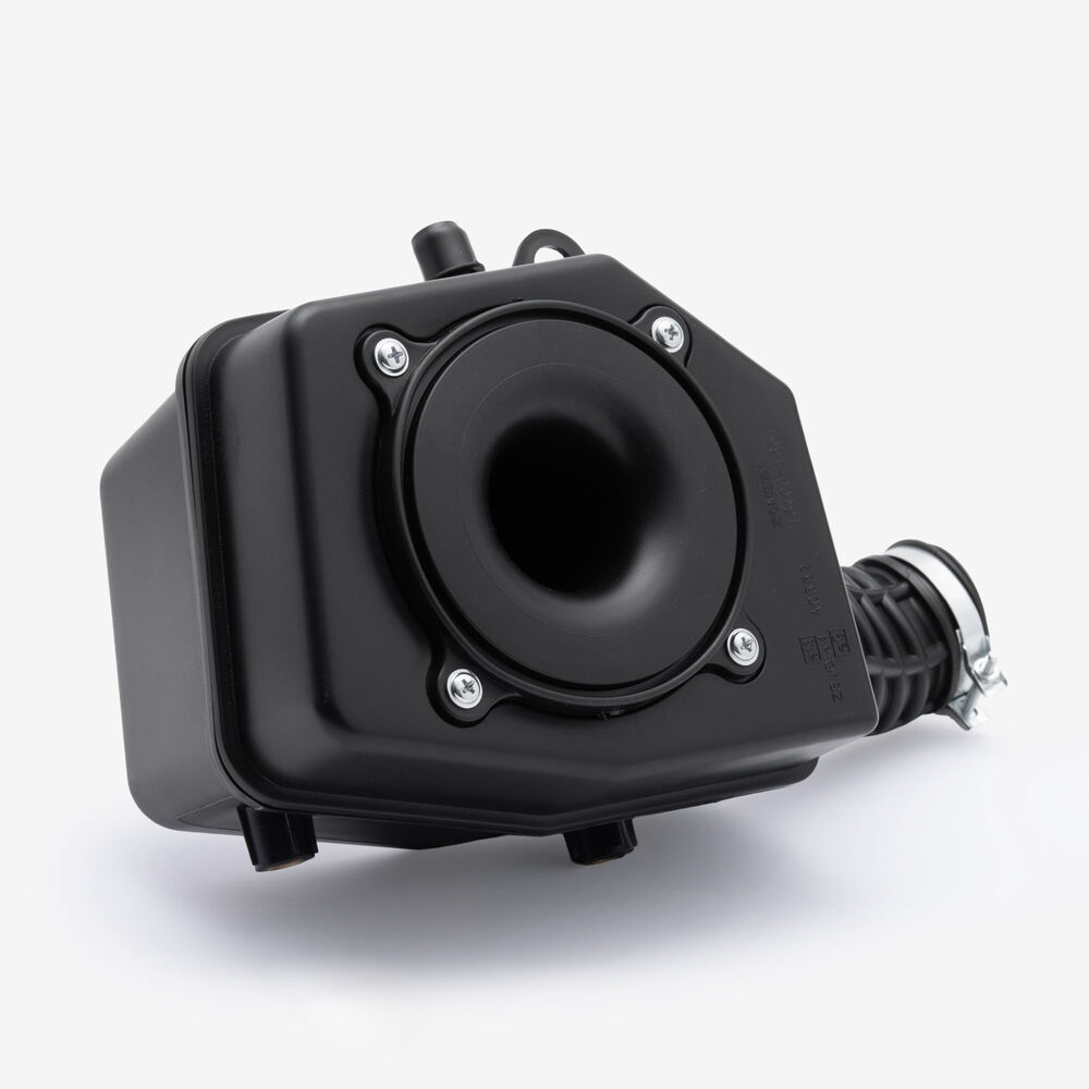 An airbox is an empty chamber on the inlet of most combustion engines. It collects air from outside and feeds it to the intake hoses of each cylinder.