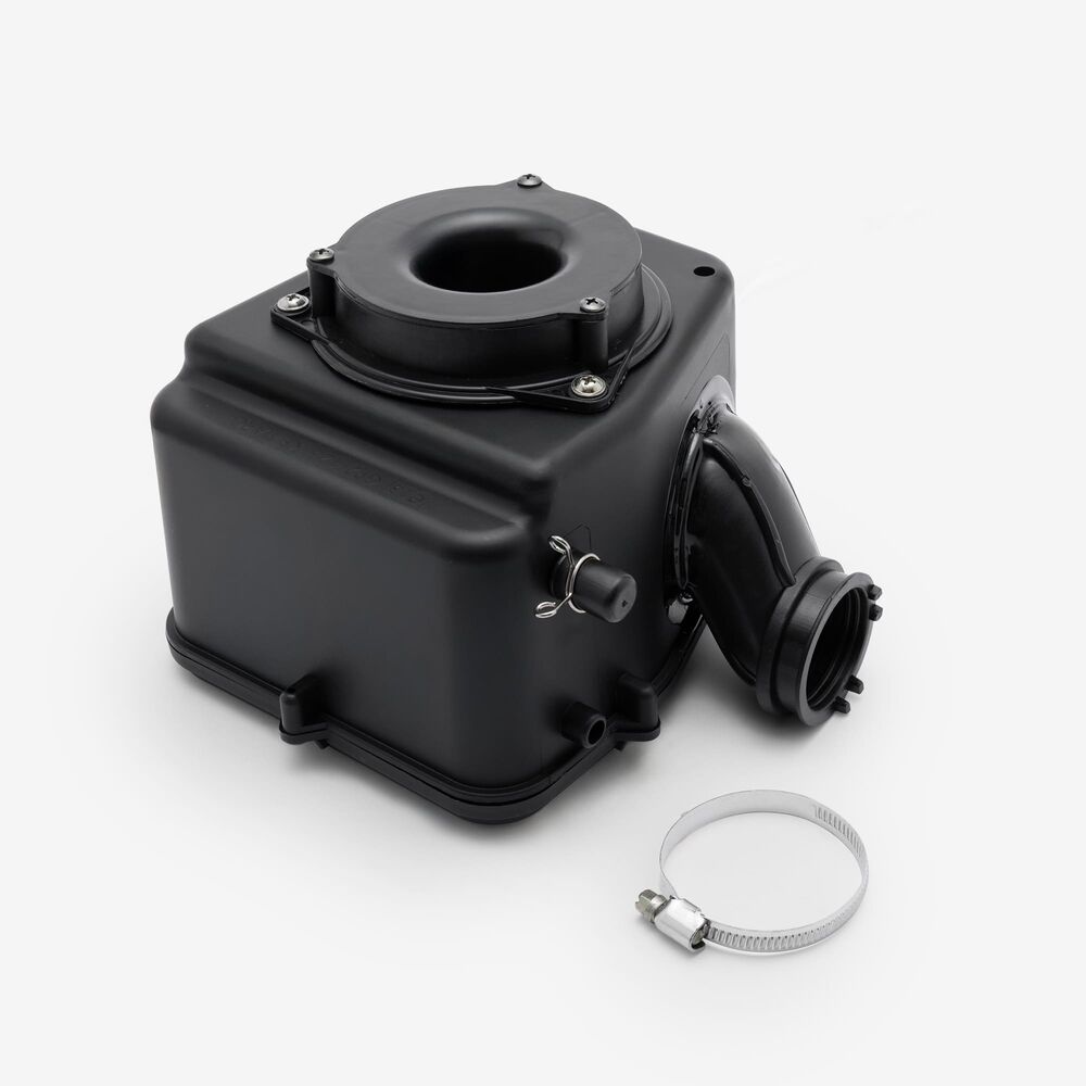 An airbox is an empty chamber on the inlet of most combustion engines. It collects air from outside and feeds it to the intake hoses of each cylinder.
