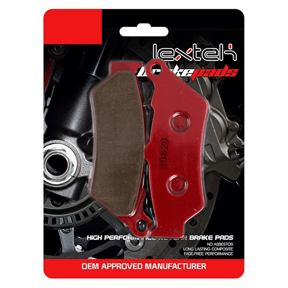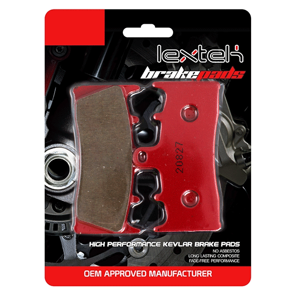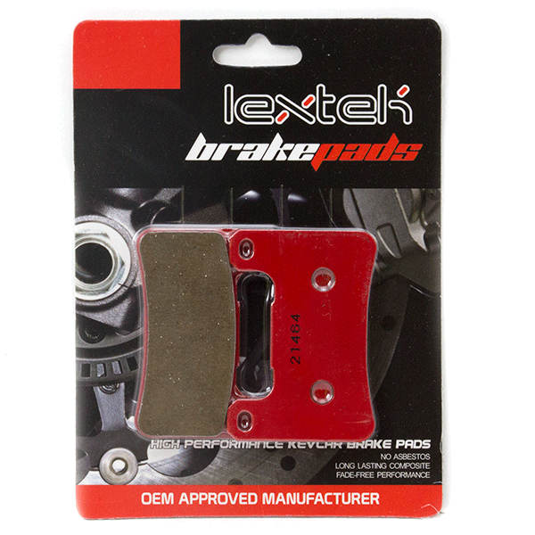 Lextek brake pads now contain Kevlar (TM) for improved durability and less disc abrasion compared with other organic brake pads. Pads are sold as a pair per caliper.