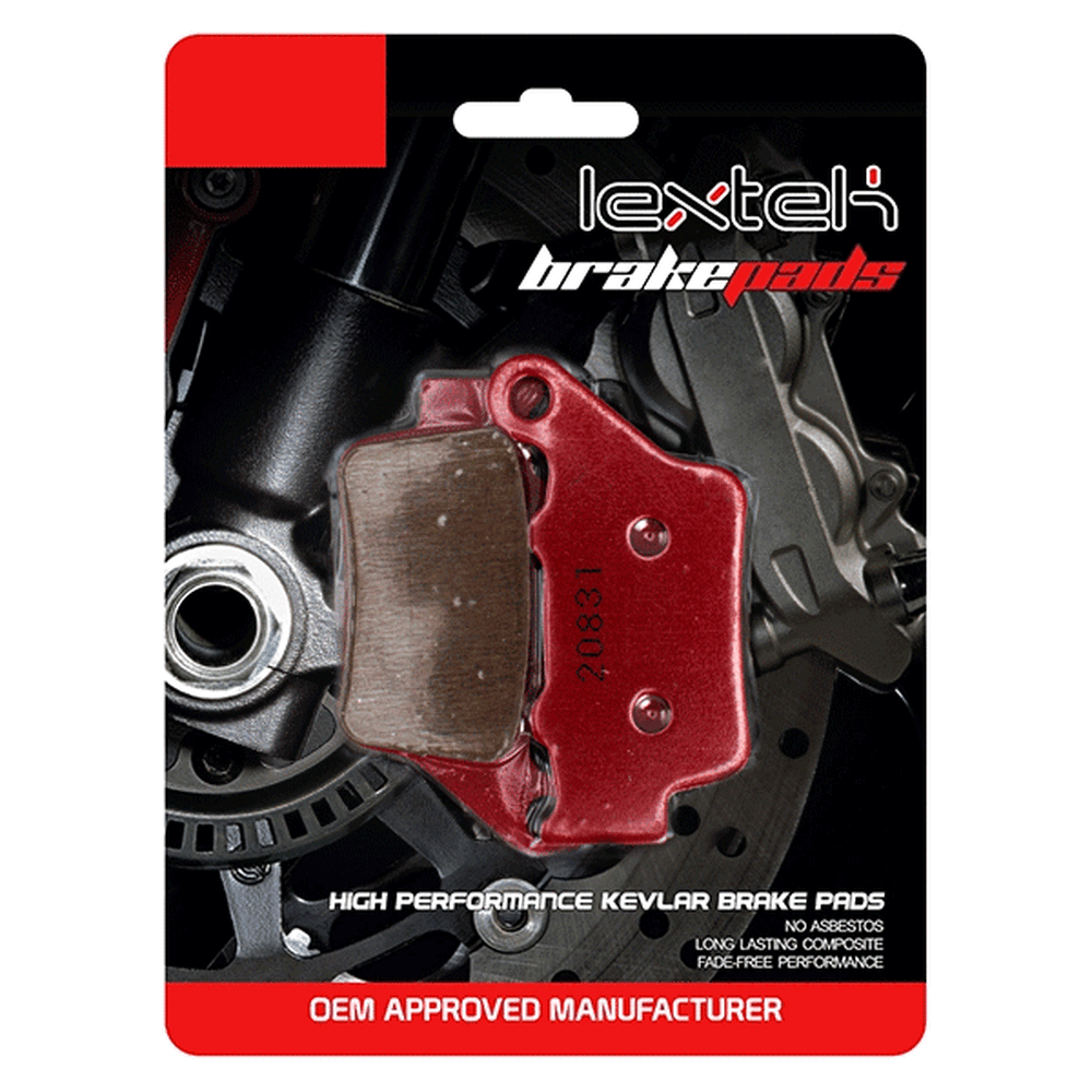 BPF089Lextek brake pads now contain Kevlar (TM) for improved durability and less disc abrasion compared with other organic brake pads. Pads are sold as a pair per caliper.