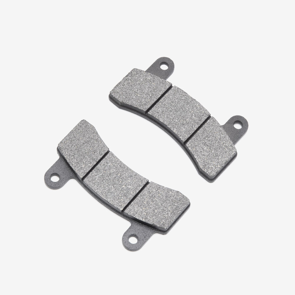 Brake pads are the friction surfaces that contact the brake discs within a disc braking system.