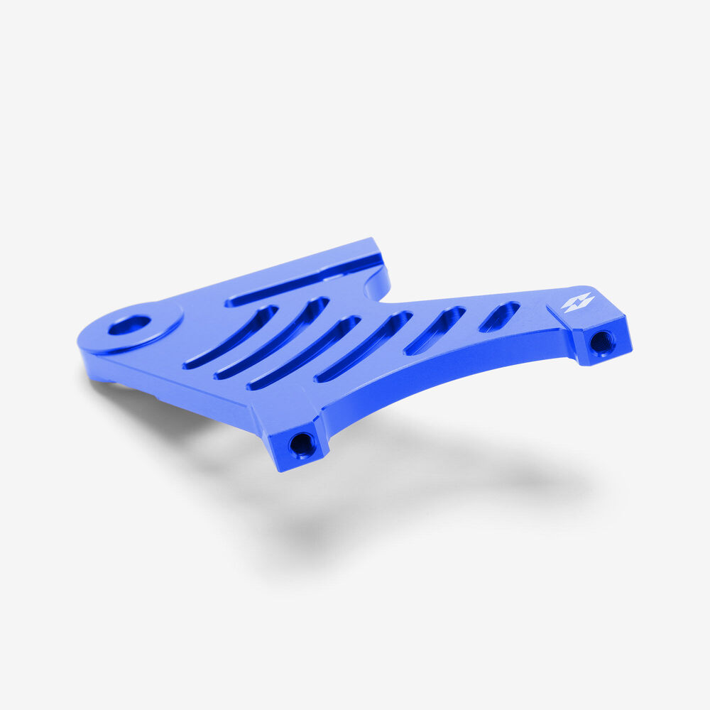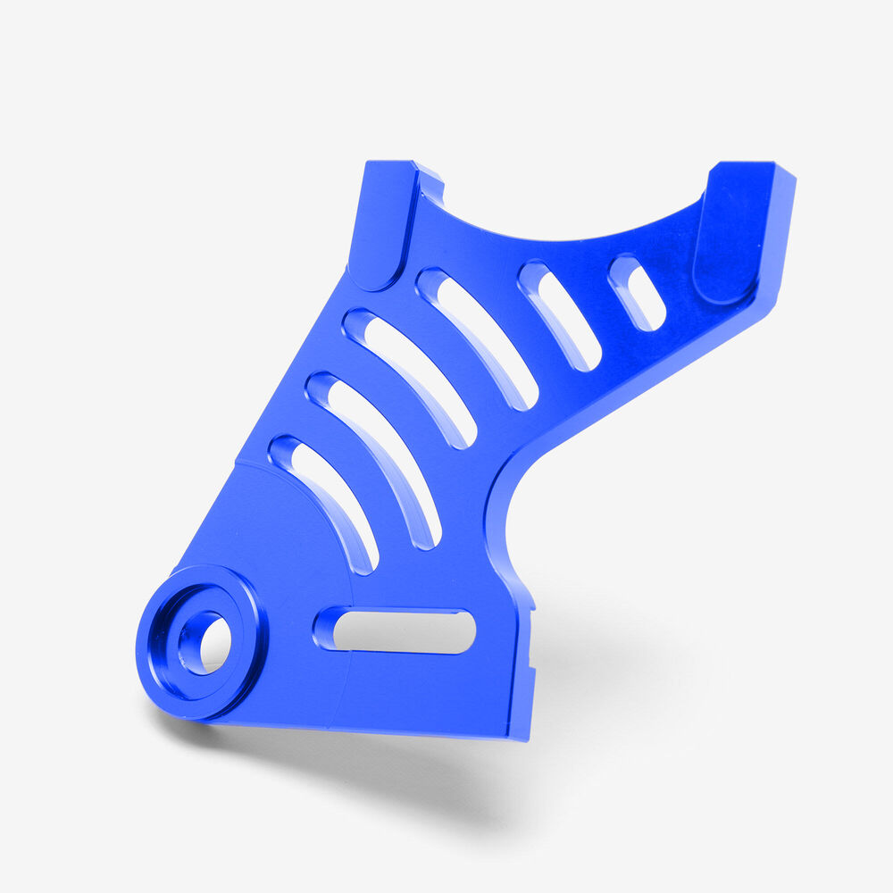 The rear brake bracket in a motorcycle is a mounting component that secures the rear brake caliper or drum assembly to the rear suspension or swingarm. It ensures proper alignment and stability of the brake system, allowing for effective braking performance and preventing movement or misalignment of the braking components.