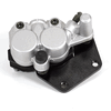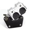 Squeezing the brake lever pushes a hydraulic piston, which sends fluid down the brake lines and into the caliper.