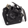 Squeezing the brake lever pushes a hydraulic piston, which sends fluid down the brake lines and into the caliper.