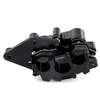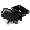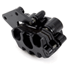 Squeezing the brake lever pushes a hydraulic piston, which sends fluid down the brake lines and into the caliper.