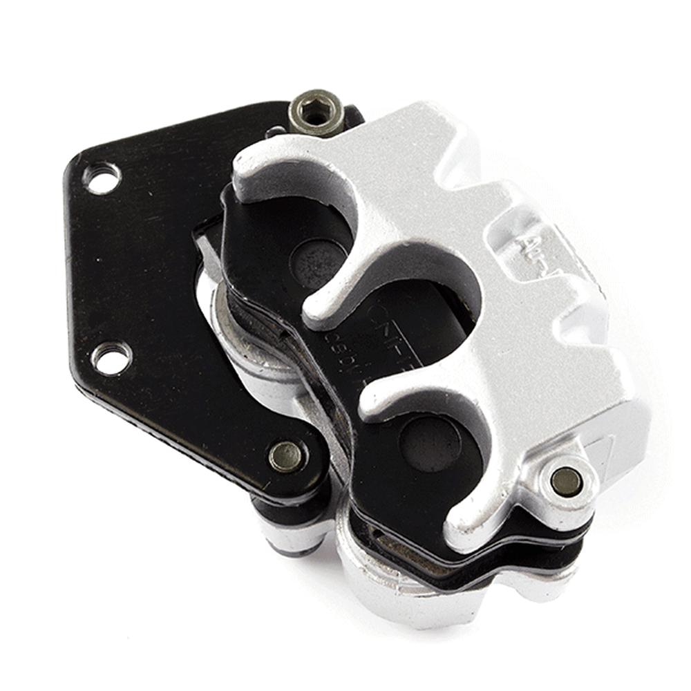 Squeezing the brake lever pushes a hydraulic piston, which sends fluid down the brake lines and into the caliper.