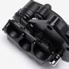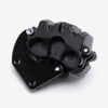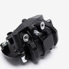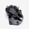 Squeezing the brake lever pushes a hydraulic piston, which sends fluid down the brake lines and into the caliper.
