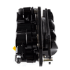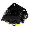 Squeezing the brake lever pushes a hydraulic piston, which sends fluid down the brake lines and into the caliper.